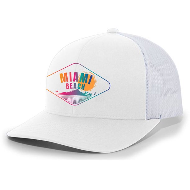 Men S Miami Beach Florida Embroidered Mesh Back Trucker Hat White Walmart Com
